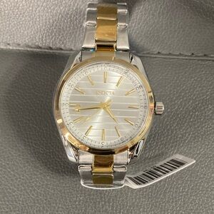 Elegant Invicta watch with a sleek silver dial and gold highlights. Ideal for any style.