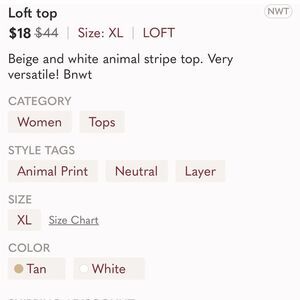Beige and white animal stripe top. Very versatile and chic! Bnwt