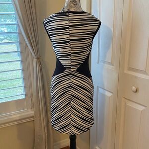 Stunning Betsy Johnson Black/White Stripe V-Neck Sheath Dress - Size 2