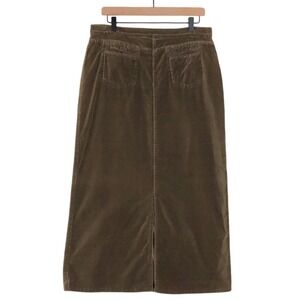 SUNDANCE Velvet Midi Skirt Sz 12 Brown Button Front 100% Cotton Casual Comfort