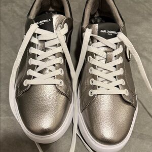Karl Lagerfeld Metallic Silver Sneakers