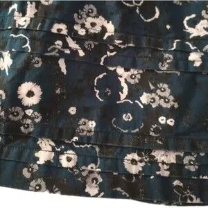 This is a dark blue mini skirt with white flowers by Ann Taylor LOFT. This skirt closes in the back with a zipper and hook/loop clip.