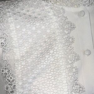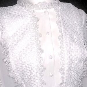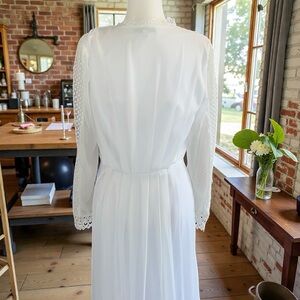 Elegant white dress with lace details. Long sleeves. Perfect for formal occasions.
