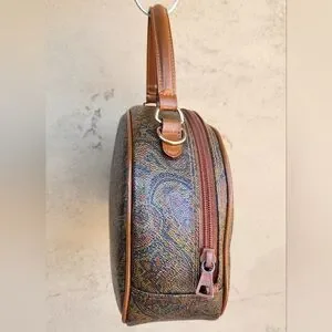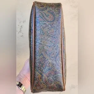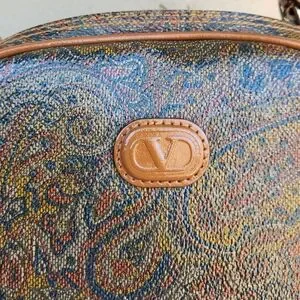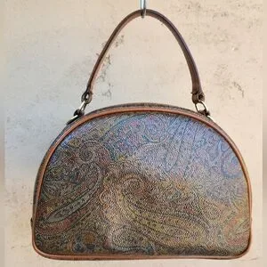 A true vintage treasure from Valentino Garavani. This stunning satchel features the iconic multicolor paisley canvas with smooth leather trim and gold-tone hardware, crafted in Italy with timeless elegance and a bold, artistic edge. The structured dome silhouette is a rarer shape, making this piece especially collectible. Includes an adjustable leather strap for versatile shoulder wear.