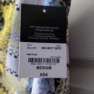 Chic sleeveless dress with a plaid pattern. Features a mix of yellow, black, and white colors.