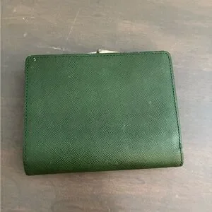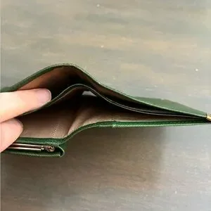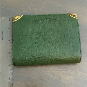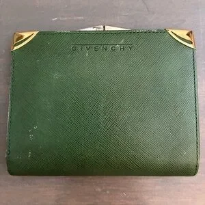 VINTAGE Givenchy Forest Green Bifold Compact Wallet w Gold Tone Accents Leather