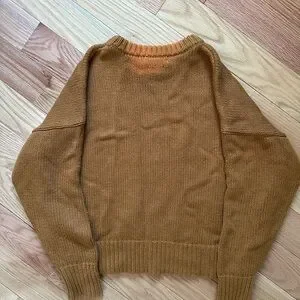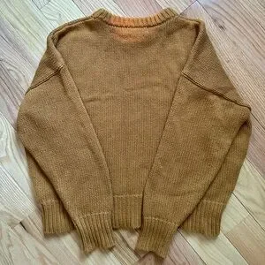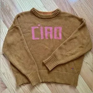 Popular Clare V. statement sweater featuring the iconic “CIAO” graphic in pink on a camel brown knit. Cozy, heavyweight feel with a relaxed silhouette.