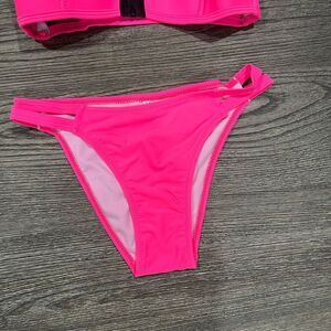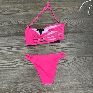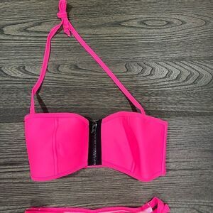 NWOT Jacques Designs Bathing Suit Zipper Front Strappy Back Bikini Pink Small