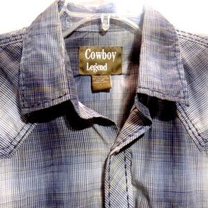 The Cowboy Legend Western Shirt is a stylish and versatile addition to any man's wardrobe. This button-up shirt features a classic black and gray plaid pattern with pearl snap closures for a western touch. The shirt is perfect for a variety of occasions, from casual outings to workwear and travel. Made from a comfortable cotton blend fabric, this shirt is easy to care for with machine washable instructions. The spread collar, pockets, and long sleeves add practicality and style to this timeless piece. (ML00089)