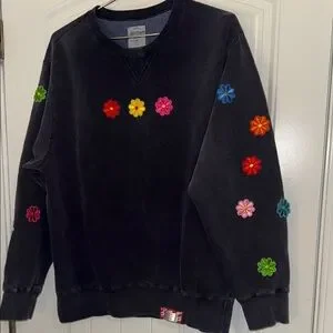 Please see all photos cute oversize hoodie with colorful flowers. Flowers are lifting buyer does know this upon purchase if you have any other questions, feel free to message me as always thank you for shopping my closet. 🫶🏾🥰✌🏾