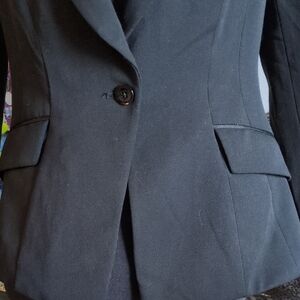 Timeless black blazer with a tailored fit. Perfect for professional and casual settings. Features a single-button closure and notched lapels.