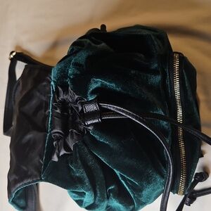 Mini Backpack Green Velvet/Velour W Gold Hardware Drawstring