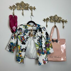 Fun Stylish floral blazer with a vibrant design. Perfect for adding a pop of color to any outfit. s