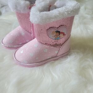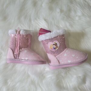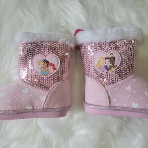 Adorable pink boots with sequin details and princess design. Perfect for adding sparkle to any outfit.