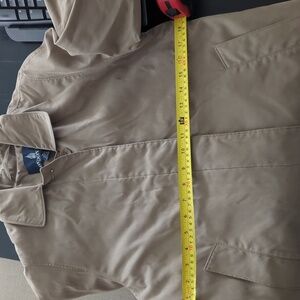 Elegant trench coat by London Fog. Features button closure and side pockets. Ideal for any occasion.