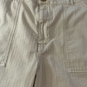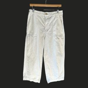 FREE PEOPLE Cream Striped Wide Leg Cropped Utility Pants 10