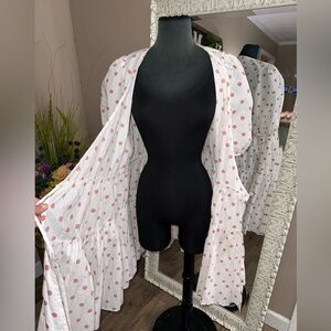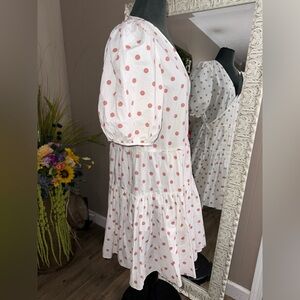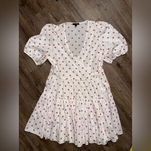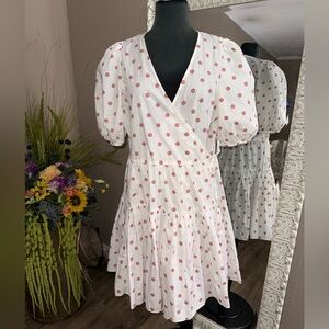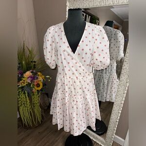 In like new condition. No flaws or signs of wear. True wrap dress with button closure on the inside, tie closure on the outside. Tagged a medium but fits like a large/x large. I’m a 10/12 and have plenty of room in this dress - could fit up to a 14. I’m listing as a large.
