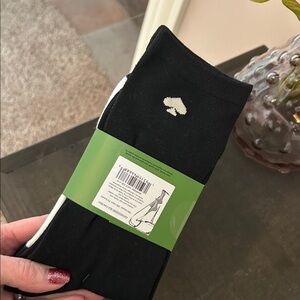 Brand new in package, comes with 3 pairs of crew socks. One size. Comes from a smoke free home