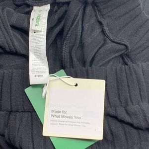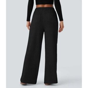 NWT Halara Women's Black Soft Ribbed High Waisted Wide Leg Pull On Lounge Pants Pockets Size L Reg, made in China. (WC-KK45)