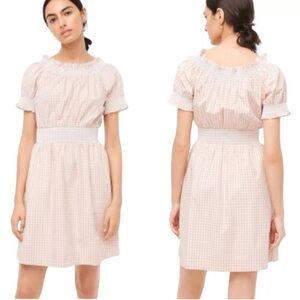 J CREW Smocked puff-sleeve cotton poplin dress in gingham