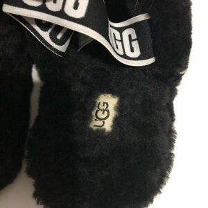 Women’s Black Ugg Slippers open toe with Logo straps size 8 loungewear fuzzy