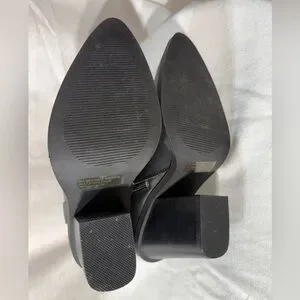 Step out in style with these sleek black ankle boots. Perfect for any occasion. In pre owned excellent condition