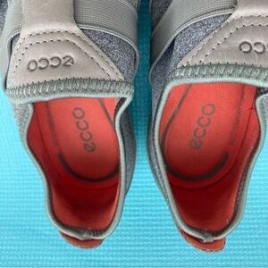 Womens Size 39 ECCO Grey Fabric Leather Elastic Slip On Shoes.