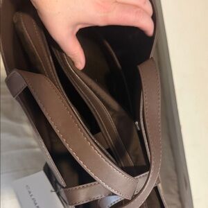 Dark brown vegan leather travel/laptop bag by Calpak. Tags still on - just too large for me. Measurements and details shown on tag. Comes with dust bag.
