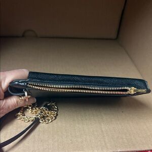 Elegant Coach crossbody with gold chain. Compact and versatile design. Could hold a small, thin phone, money, credit cards, lipstick or other small items.