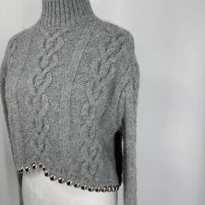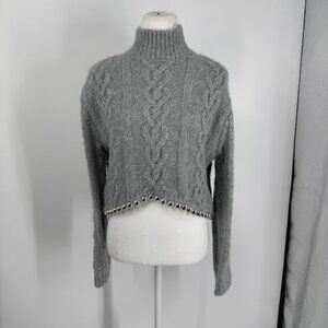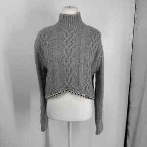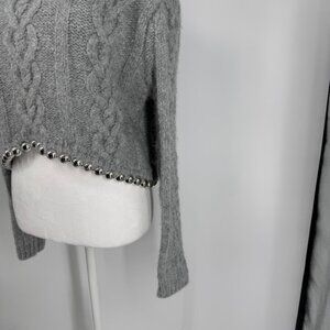 Zara Silver Bead Embellished Cable Knit Sweater - Small