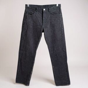 John Galt 100% cotton corduroy pants in a dark grey/black wash. Classic straight-leg style with a button fly and soft vintage-feel corduroy. Tagged waist 16" (flat) and 30" inseam — check measurements for best fit.