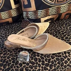 NWT - London Rag - Elegant Tan Mules with Rhinestone Strap