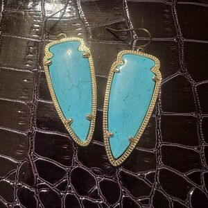 Beautiful Kendra Scott Skylar arrowhead earrings in a stunning turquoise and gold tone. These earrings are like new and were only worn once or twice—no visible signs of wear.