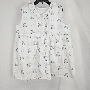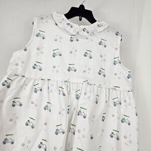 Mary & Grace Girls Size 7 White Ruffle Tunic Button Up Golfcart Clubs Balls Printed