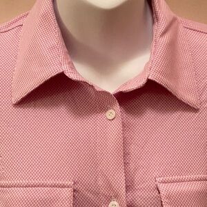 This is an extremely soft knit shirt. Button front and button cuffs. New without tags. 22 inches long.