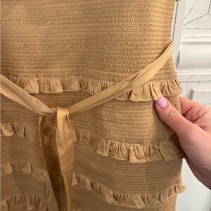 V. Chapman Liky Dress Tan Size 4 Smocked Ruffle Midi