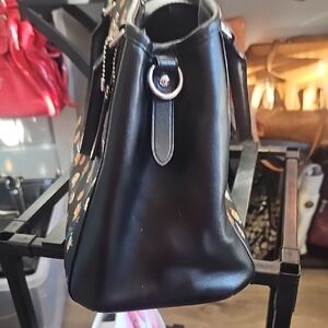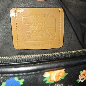 Elegant Coach satchel with vibrant orange and blue floral pattern. Perfect for any occasion. please see her creed for the peeling that is her only call out