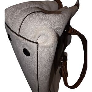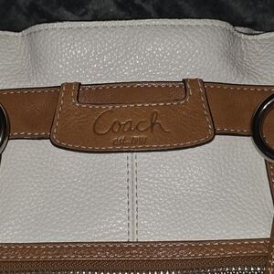 Coach Penelope Ivory Pebbled Leather Tote Handbag with Tan Leather Handles and Trim - EUC