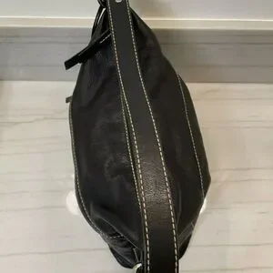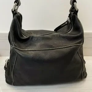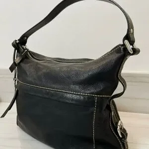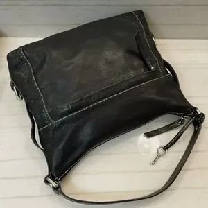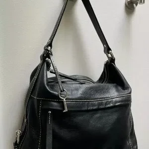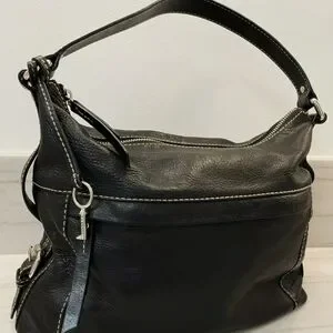 Fossil Black Pebbled Leather Hobo Satchel Tote Bag with Silver Key Charm