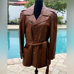 Elevate your style with this classic brown leather jacket. Perfect for any occasion, this jacket offers both comfort and sophistication.