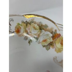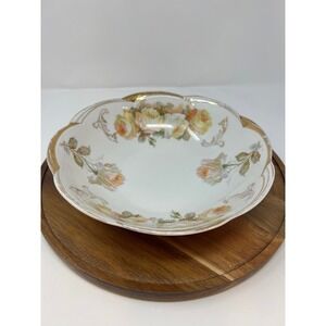 Vintage Porcelain Bowl Floral Roses Gold Trim Scalloped Edge