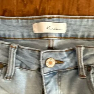 Stylish light blue skinny jeans. Features classic five-pocket design. Perfect for casual wear.