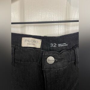 Clean girl, Wide leg trousers, logo, black denim, all seasons, pockets, Anthropologie
