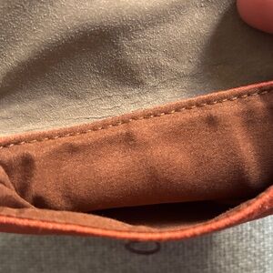 This vibrant pouch features a colorful geometric pattern with a secure button closure. Perfect for keeping your essentials organized in style.
