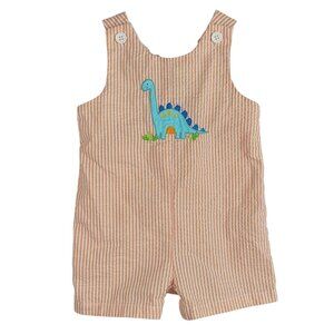 Good Lad Romper Shortall Orange 6-9M Buttons Seersucker Striped Dino Embroider