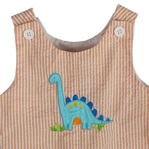 Good Lad Orange White Shortall Romper Sleeveless Buttons Snaps Seersucker Striped Dinosaur Embroidered Applique