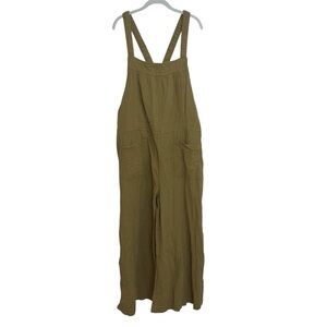 Natural Life Olive Cotton Wide Leg Gauze Overalls Size XL Oversized Boho Hippie