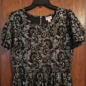 Elegant LuLaRoe Amelia midi dress with black and silver swirl design. Perfect for elegant outings. Only worn 1x.