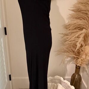 This elegant black backless dress is perfect for any stylish occasion. Its sleek design offers a modern and sophisticated look.