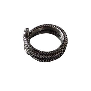 Elegant silver snake ring with intricate detailing. Perfect for adding a unique touch to any outfit.